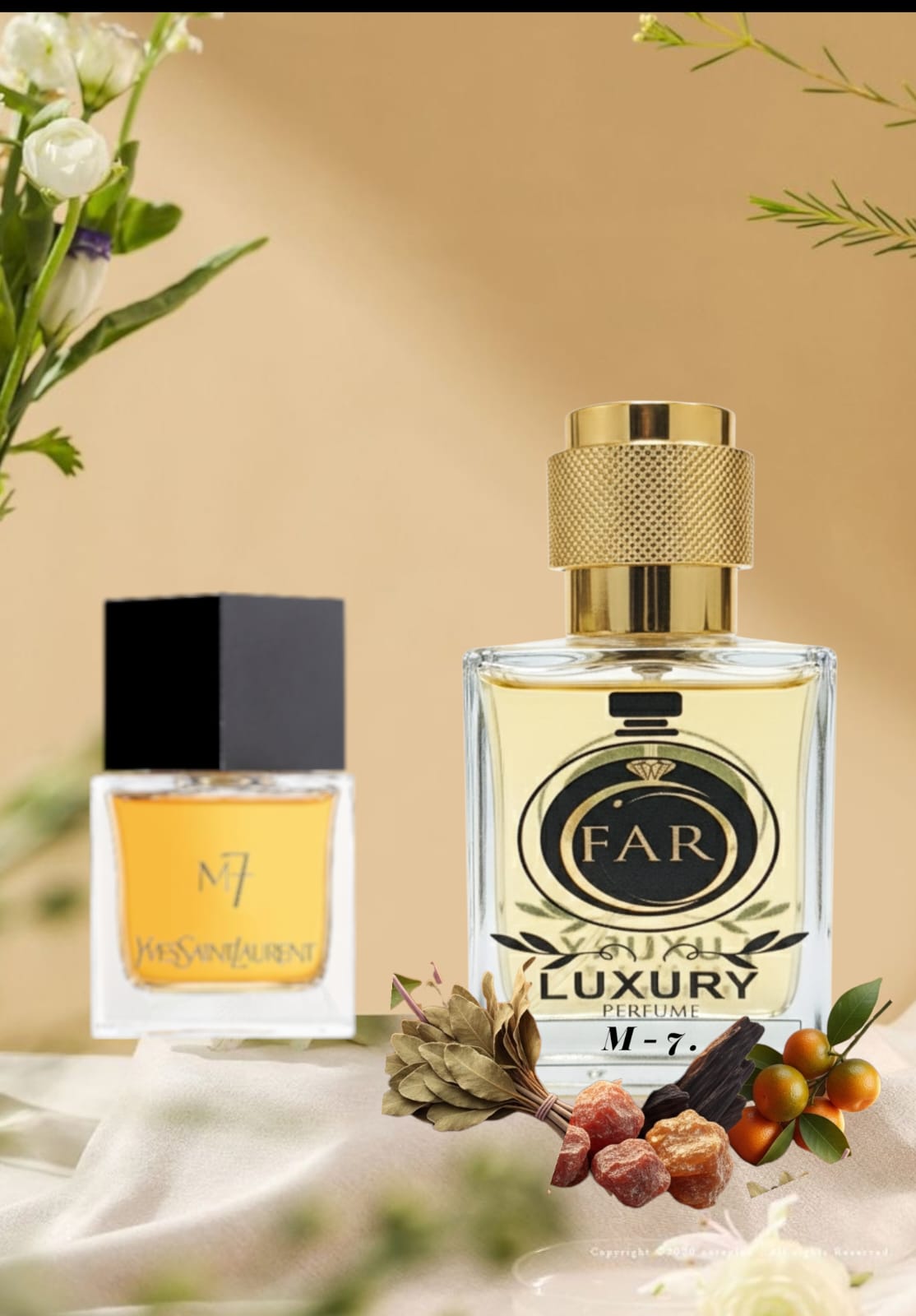 ✨ About the Perfume — Ḿ-7 Ḿ-7 is a luxurious masculine fragrance from the iconic FAR. launched as one of the first designer scents to prominently feature oud (agarwood) in a mainstream perfume, Ḿ-7 combines fresh citrus with rich, resinous woods and warm amber for a bold, seductive experience.